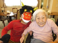 鬼に当たると、本物の節分の豆がもらえます(*^-^*)