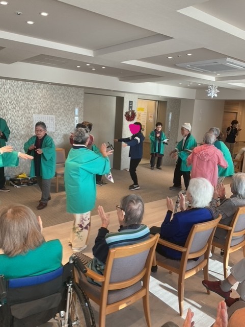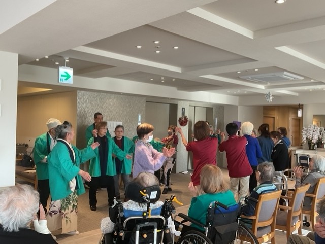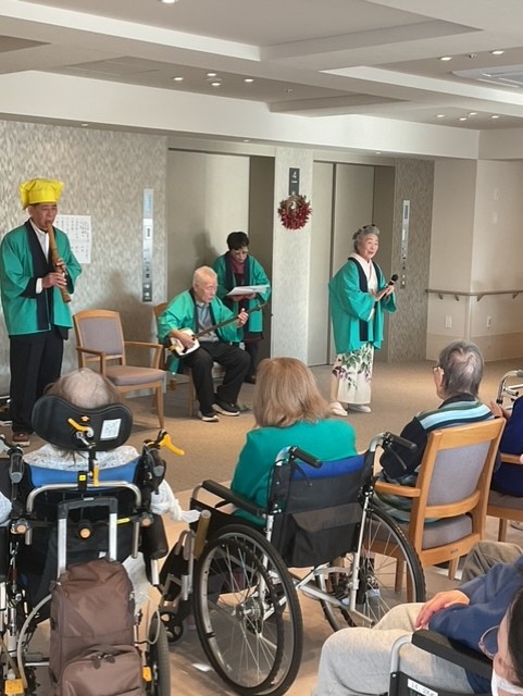 尺八や三味線の生演奏のもと、「民謡」を披露していただいたり、入居者様・スタッフも一緒に歌ったりと…♬🎤