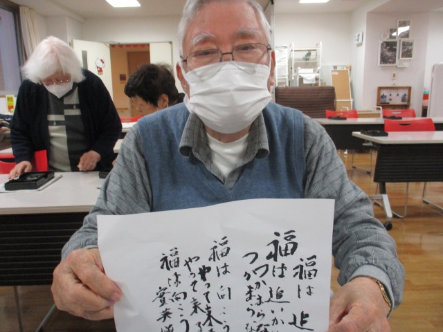 こんにちは、シーハーツ柏です。 先日の百人一首大会での白熱したご様子をお伝えします。入所者様も終盤になると、上の句が詠まれた瞬間に、目を左右上下に動かし、「はいっ!」と、札を手に取る姿が光りました。 幼き日に和歌で遊んだ記憶は、残っているものですね。 休憩のお茶タイムに厨房さんから入所者様に干支饅頭が提供されました。模様は「巳」です。かわいいですね。「甘くておいしいです。」と、にっこり舌鼓み。 いいお正月でした。