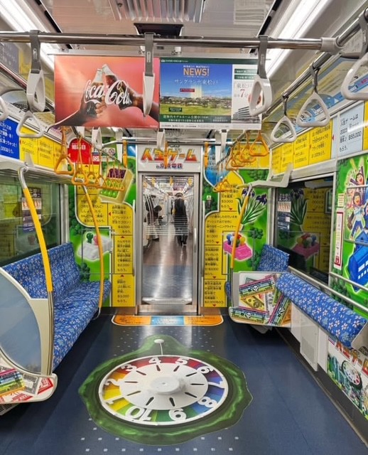現在、その浅草線(京成線直通)の電車の一部車両が、タカラトミーの「人生ゲーム」仕様になっています!!Σ(・□・;)