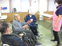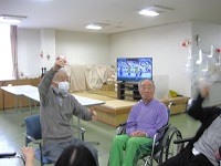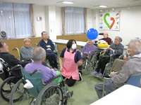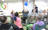 風船をつないでいるうちに、「こりゃからだがあったかくなっていいね!」と入居者様。