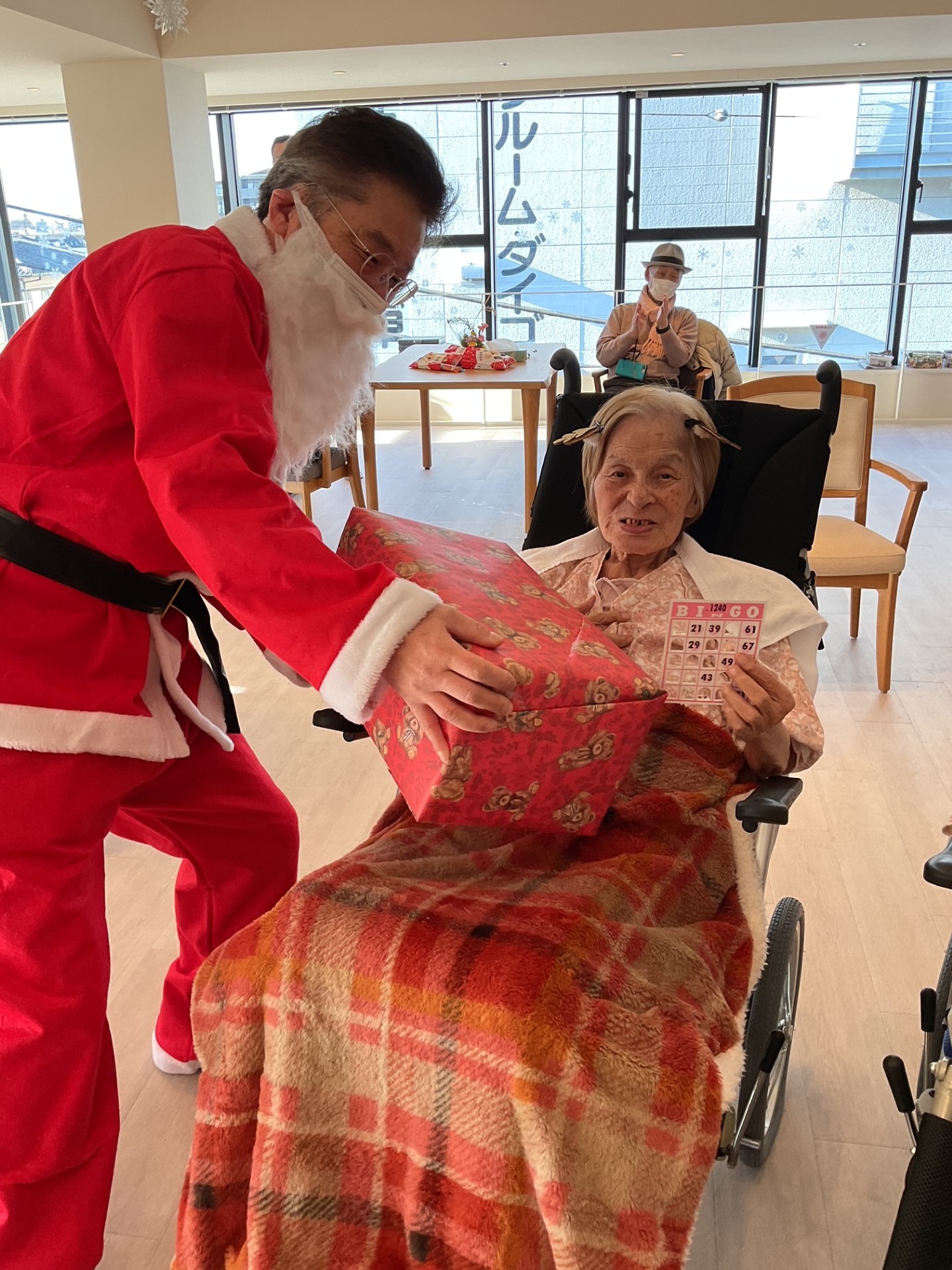 幸運にもBINGOした入居者様には「施設長サンタ🎅」よりクリスマス プレゼント贈呈!笑顔のオンパレードでした…(*^-^*)。