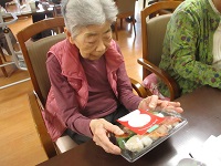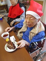 「何が入っとるんかね~」とワクワクしながらプレゼントの袋を開けたり、美味しいケーキを食べられたり、最後は皆でクリスマスソングを歌いながら、楽しいひと時を過ごされてました♪
