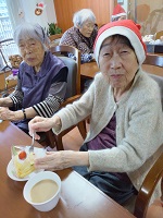 「何が入っとるんかね~」とワクワクしながらプレゼントの袋を開けたり、美味しいケーキを食べられたり、最後は皆でクリスマスソングを歌いながら、楽しいひと時を過ごされてました♪