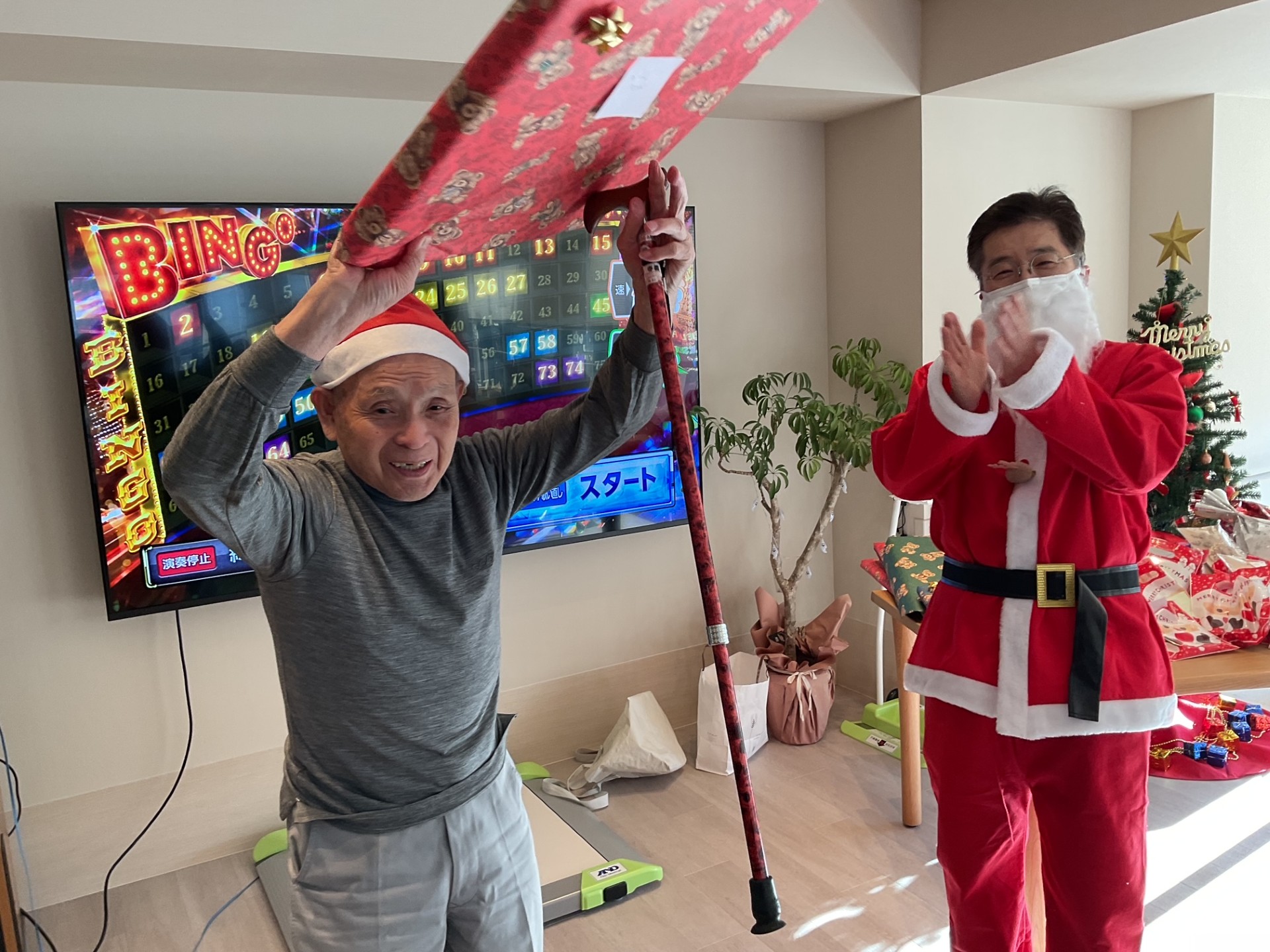 幸運にもBINGOした入居者様には「施設長サンタ🎅」よりクリスマス プレゼント贈呈!笑顔のオンパレードでした…(*^-^*)。