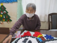 チラッと見えているとは思いますが、雪だるまを作ってもらっており、色々な色を使っている為、作りながら「可愛いね~」「色んな色を使っとるのがいいね」と言って下さいます。