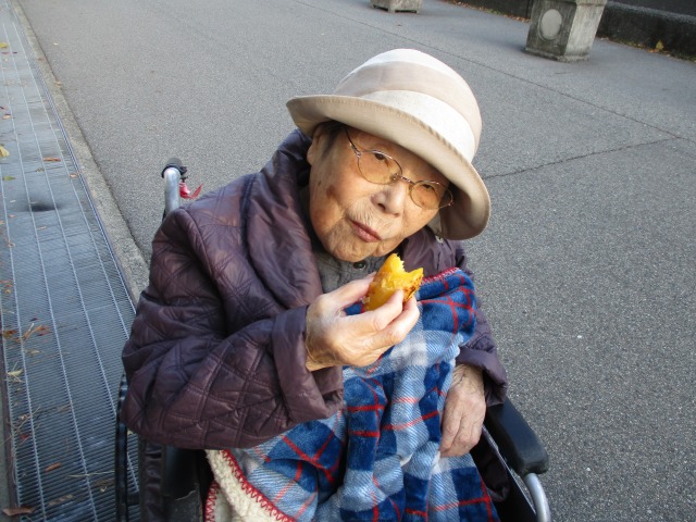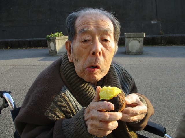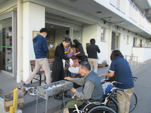 今日は午後から【焼き芋大会】‼屋上で採れたさつまいもをいよいよ焼く時がきました‼最初は炭に火が付かず苦戦しましたが、火が付いてからはいい匂いが立ち込め今か今かと焼けるのを皆で待っていました(*^-^*)うまく焼けるかな…の心配をよそに結果は大成功‼\(^o^)/割ってみると見事な黄金色‼食べてみるとすご~く甘い‼皆様も笑顔でパクパク(*^-^*)もう1本ちょうだい‼とおかわりされる方も(*^▽^*)皆様で育て、収穫したさつまいもなので嬉しさもひとしおです(^^♪