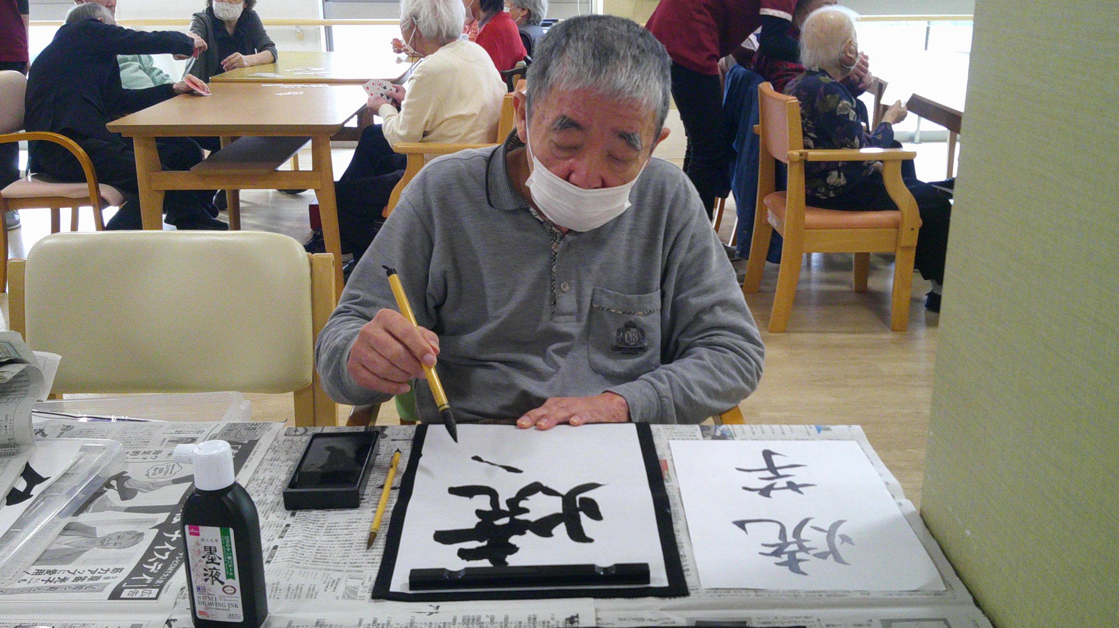 先生のお手本を見ながら一文字ずつ筆を走らせていきました😃