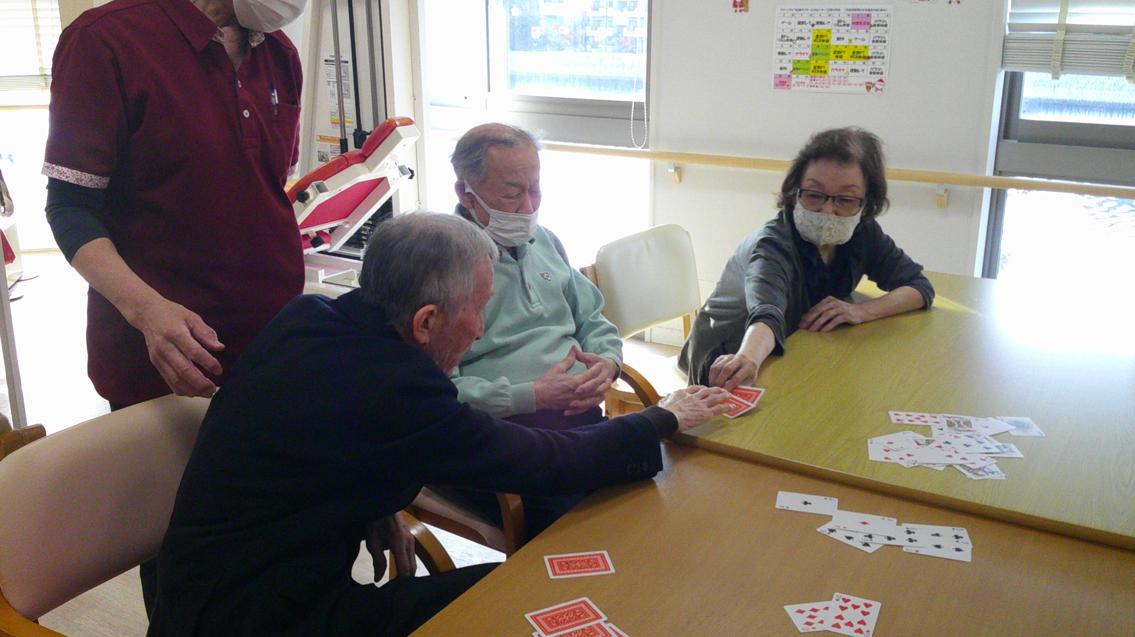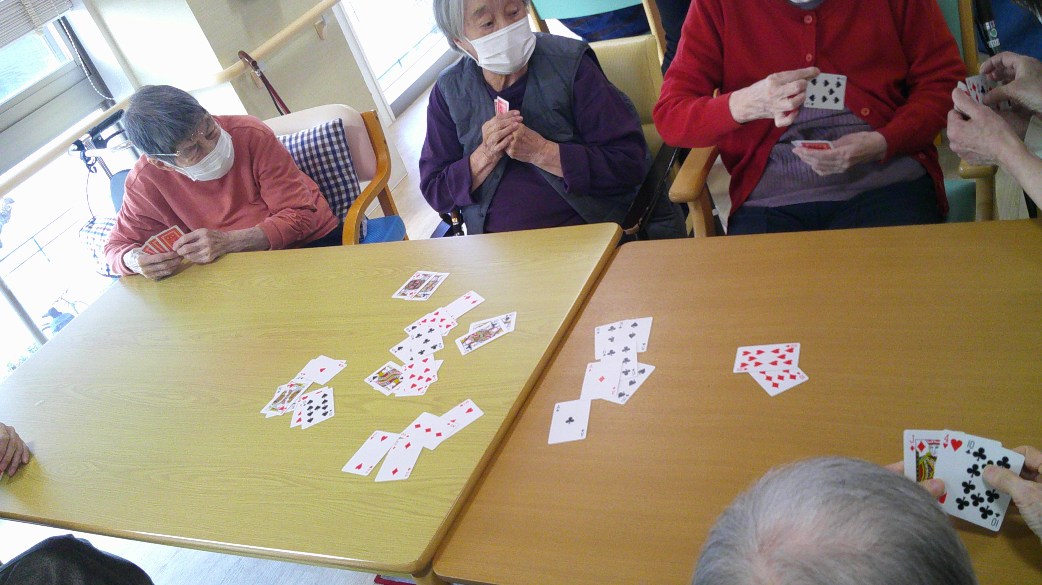 こんにちは、デイサービスです。本日はゲームレクで輪投げを行いました。10本の輪を投げていたただ来ましたが、いつもより少し距離を遠くしたので苦戦されていました(笑) 「手首が痛いから入らない」「10本も投げたら腕が痛くなる」と初めはおしゃっていましたが、いざ輪を持つと真剣な眼差しで10本投げ、「もう終わり!?」「もっと投げられるよ」と元気な姿を見せてくださいました。輪投げももちろんですがご謙遜もお上手です。