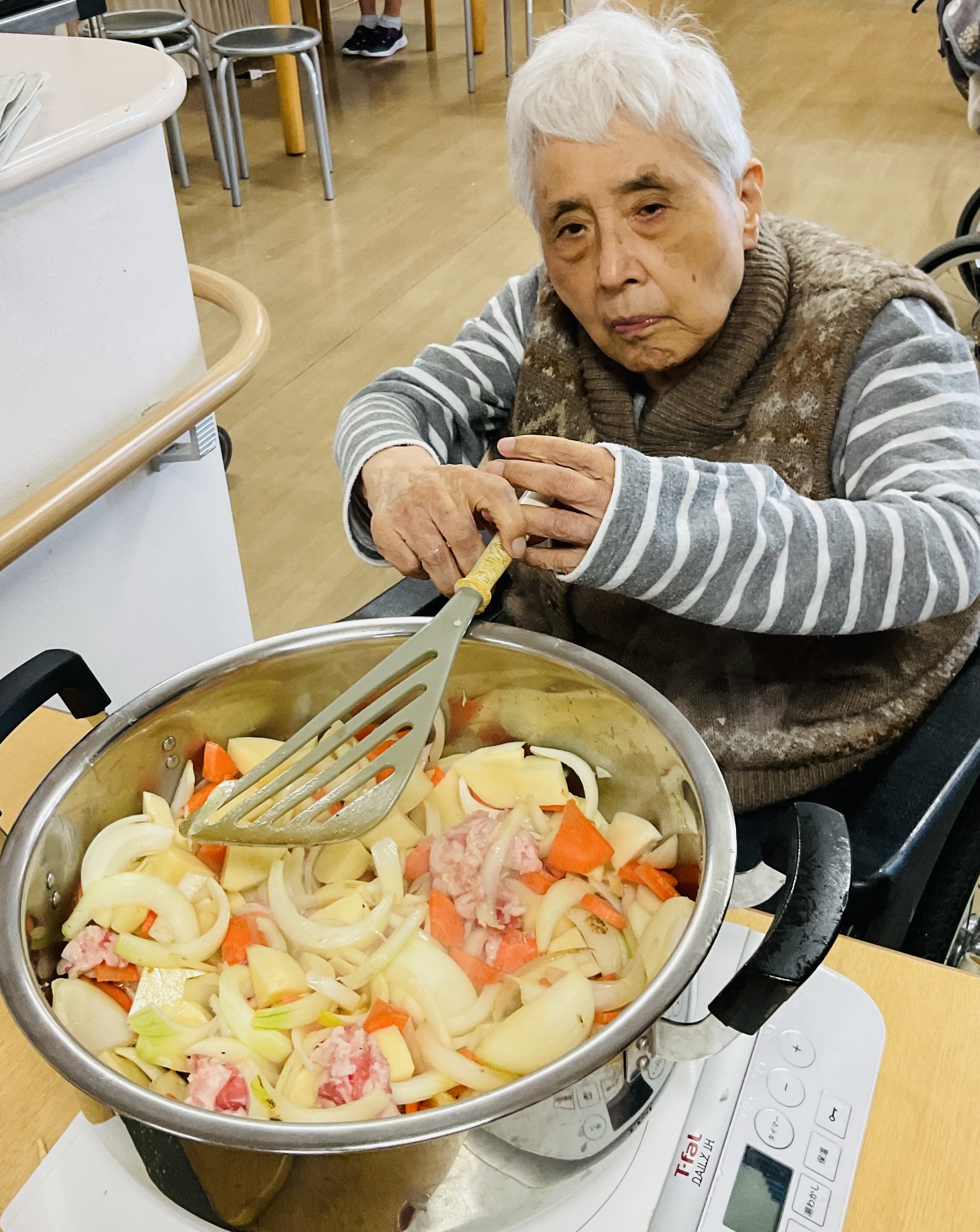 玉ねぎの皮剥き、野菜を一口大に切っていただいたりと