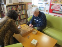 今日の一枚は習字を書く直前のご入居者様のご様子です。