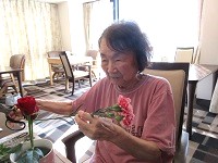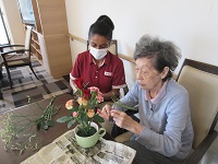 女性の入居者様が集まって、思い思いにアレンジを楽しまれていました。