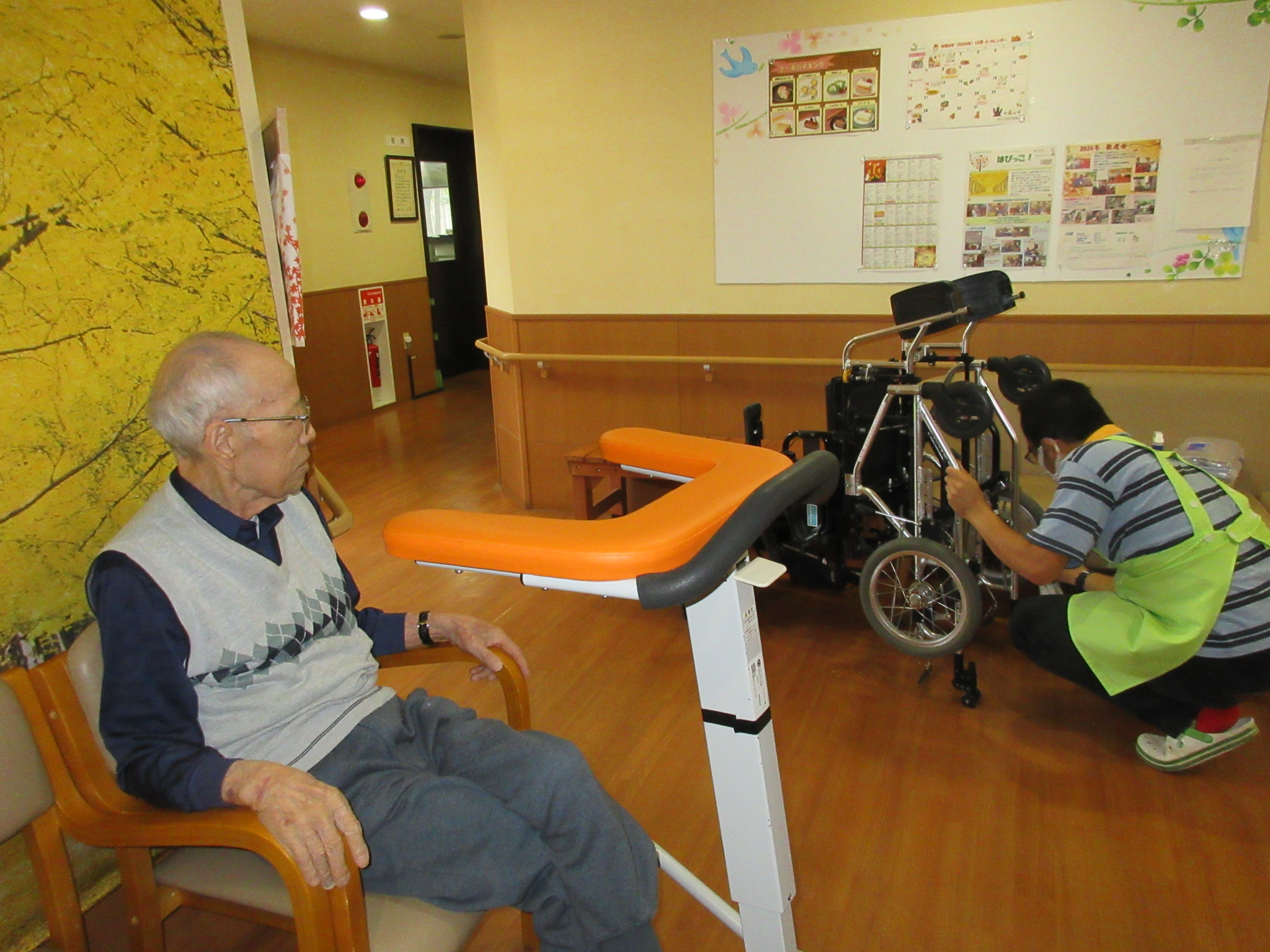 今日は朝から、機能訓練指導員が車椅子の修理・・・