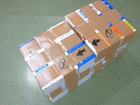 重ねた牛乳パックを3個セットにしてガムテープで固定。