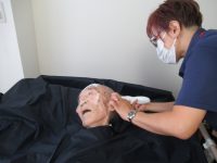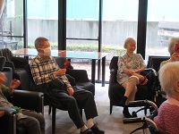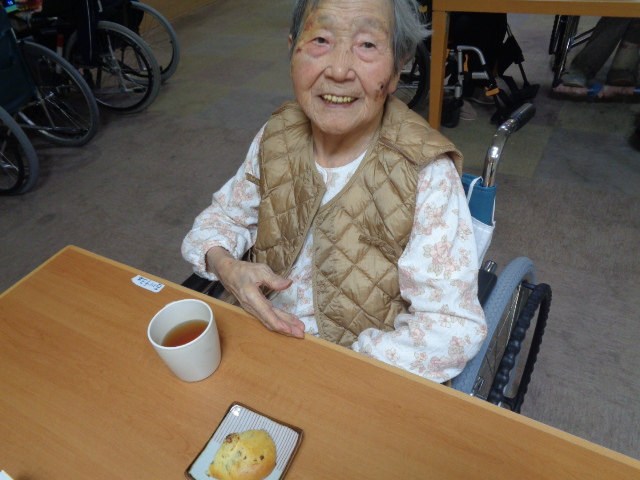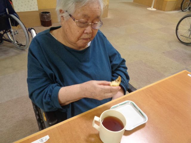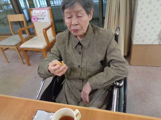 お庭で焼いたお芋を見て頂き、食堂で蜂蜜とバターがかかった甘い焼き芋を食べて頂きました