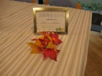 食堂の中は秋まっしぐら、天井一面に紅葉が