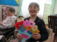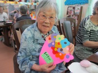 おやつ前にはスタッフから皆様に手作りの花束をプレゼントさせていただきました。あまりの可愛さに皆様喜んでおられました。