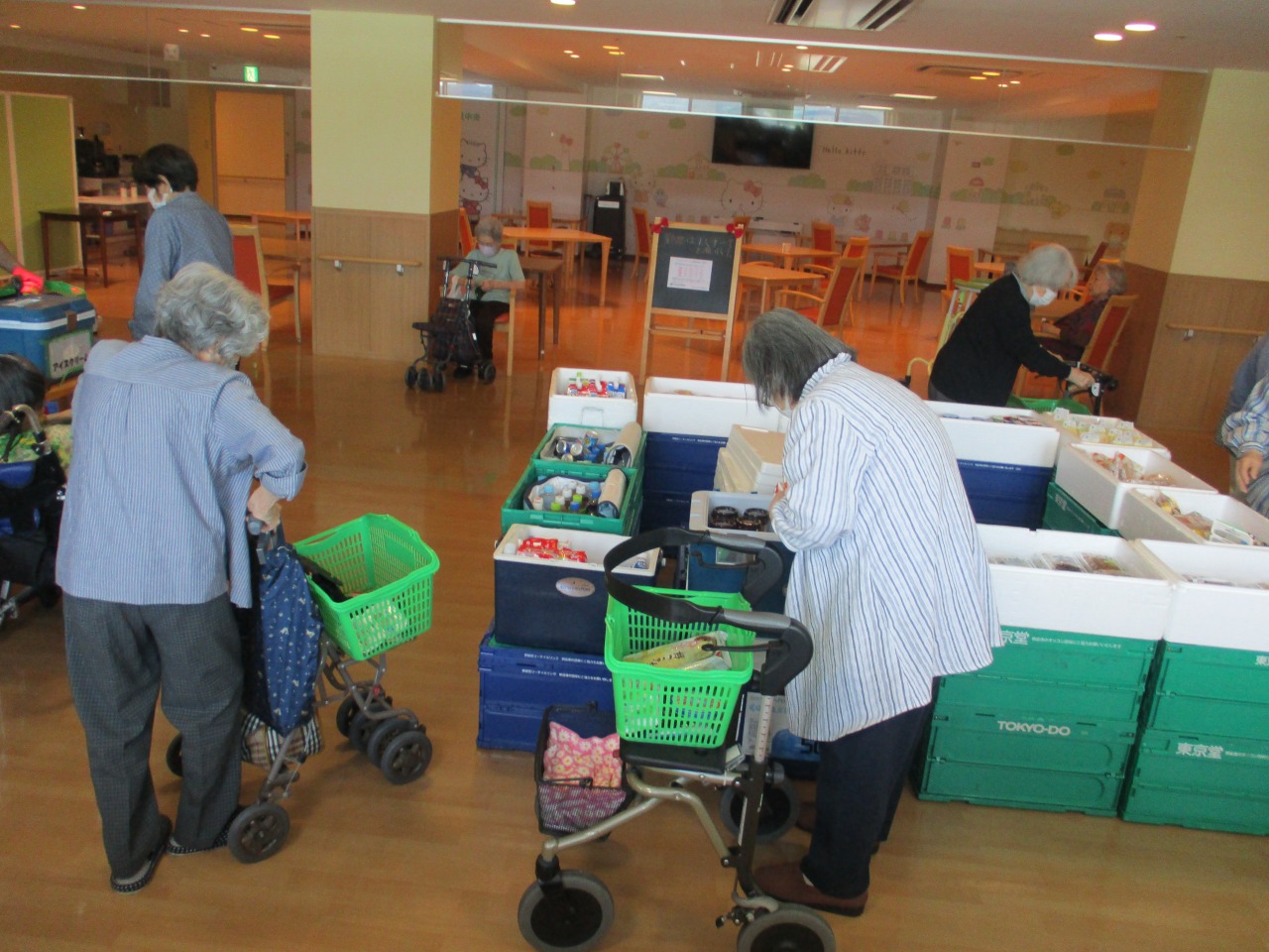 本日はおやつバイキングでした。メニューは、せんべい、キャラメルコーン、カステラ、海老せんべい、ボーロでした。ある利用者様は、「これ美味しい。」と言いながらせんべいを召し上がっておられました。次回も美味しいおやつを提供したいと思います(^-^)