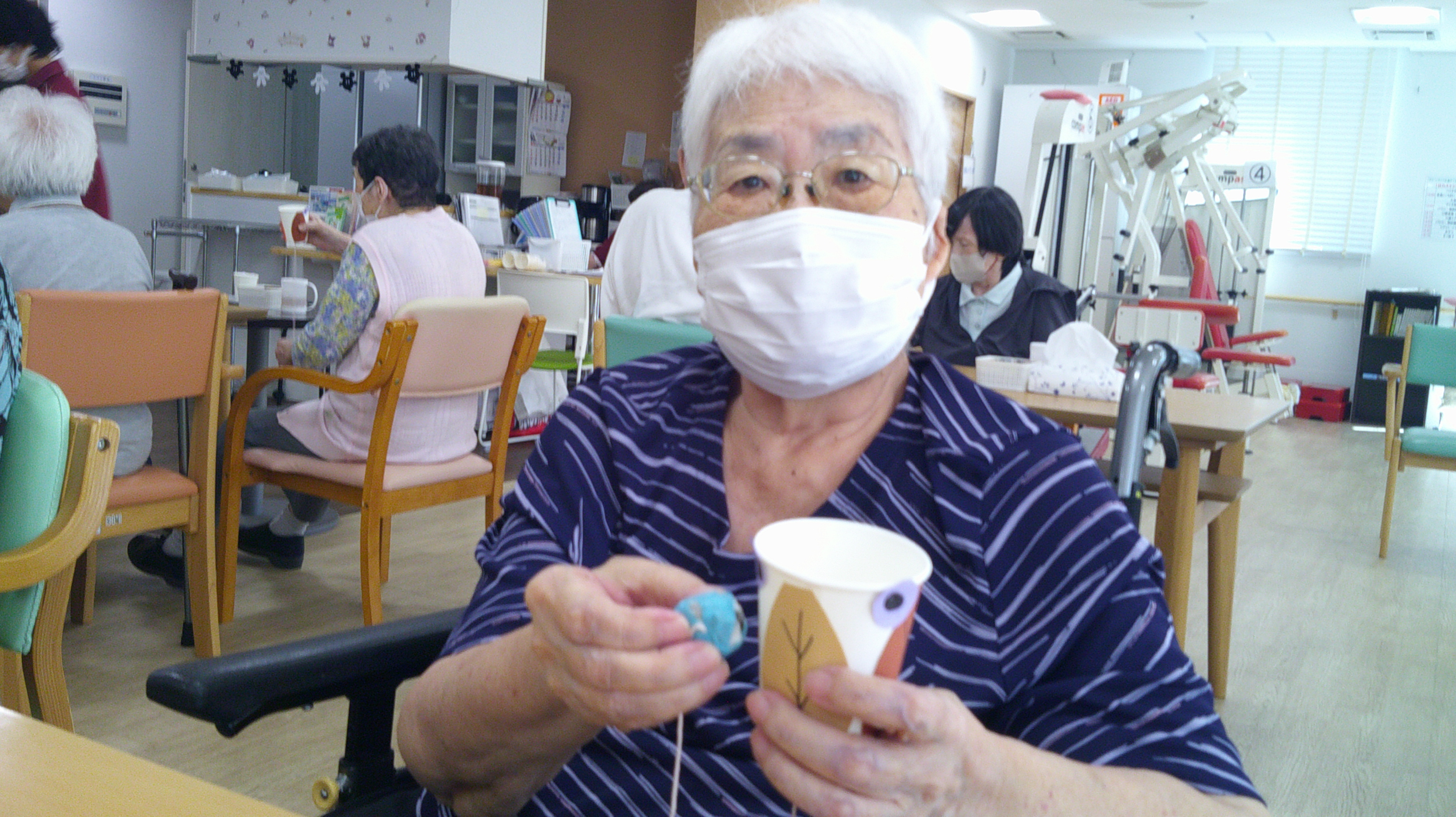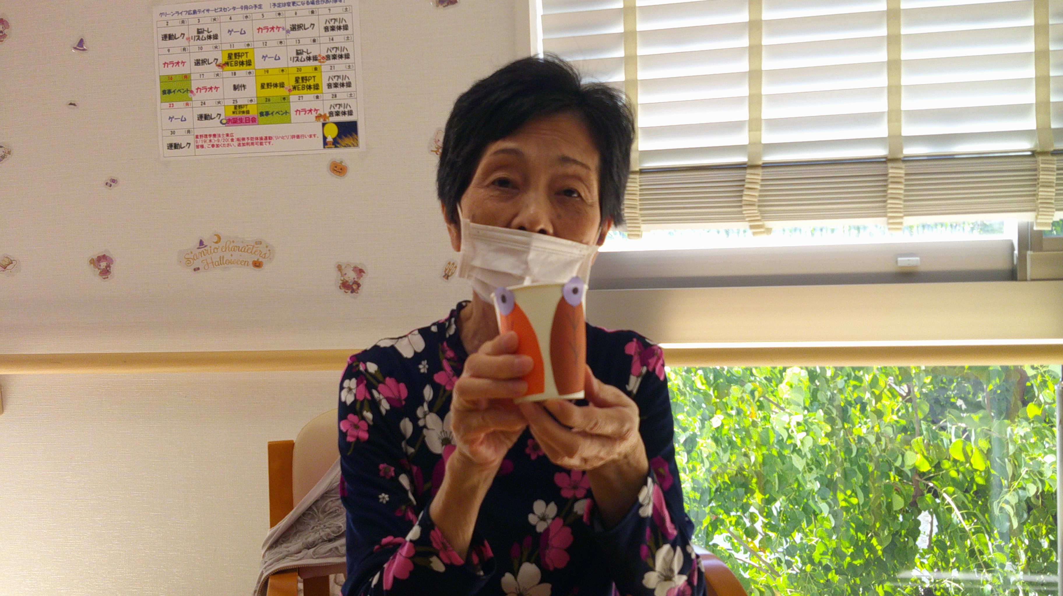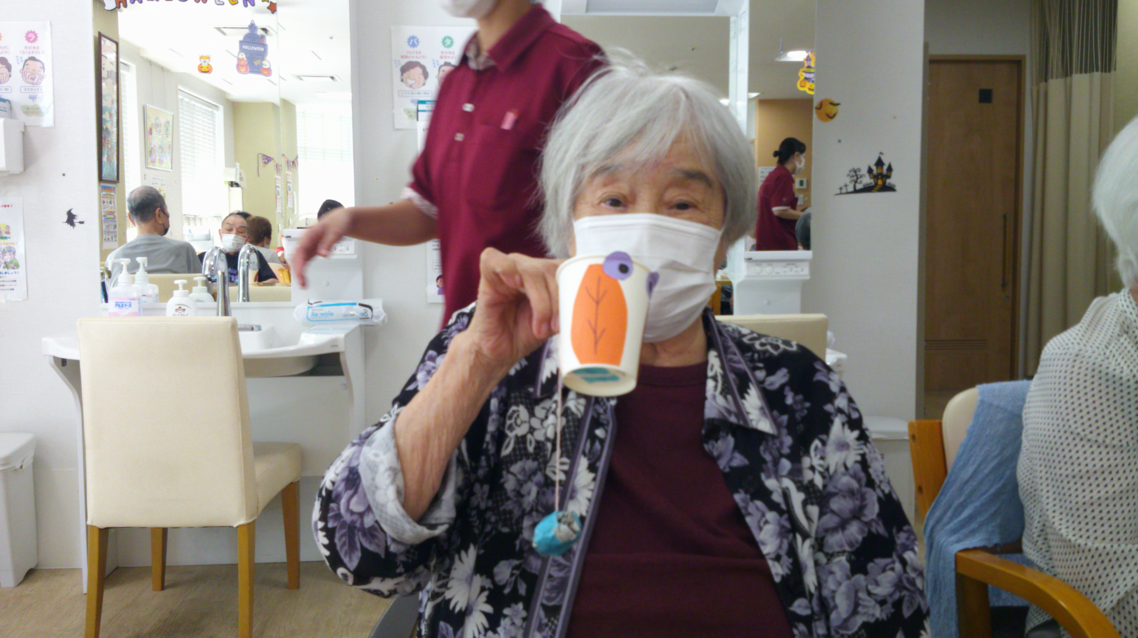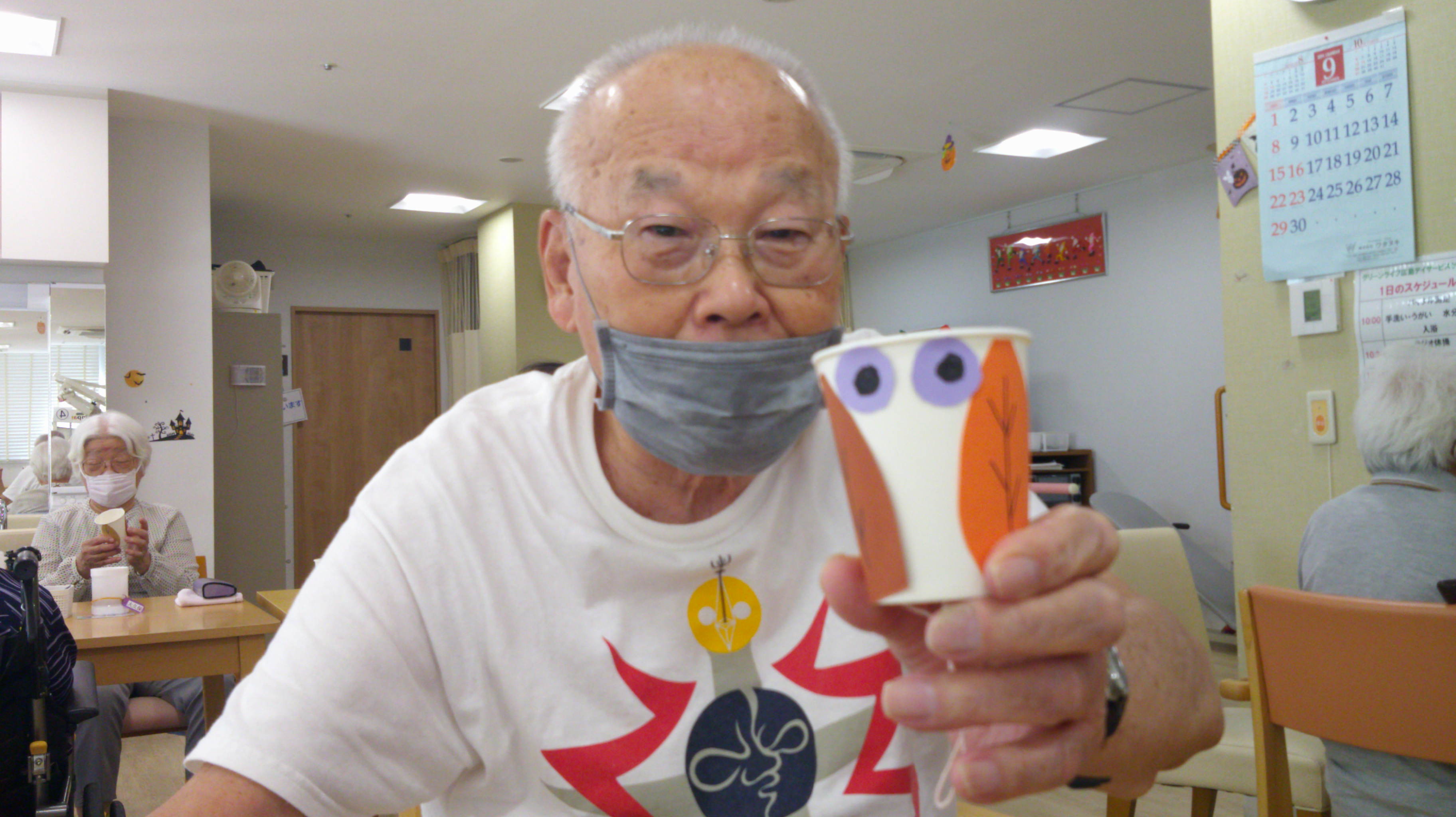 こんにちは、デイサービスです。今日は秋の制作教室ということでハロウィンリース🎃を作りました。紙皿をくりぬいておはながみを巻いて色付けをしたものがリースの土台になっています。ご利用者様には折り紙でかぼちゃのおばけ🎃ジャックオーランタンや黒猫を折ってもらいました。リースの中央は折り紙の切り絵でくもの巣が貼られています。「こんなにかわいいのができたから孫に見せよう。」「難しかったけど頑張ってよかった。」と完成作品に大満足のご様子でした(*^-^*)