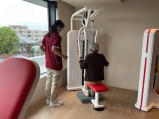 当施設の最上階には、広いリハビリ室と多数のパワリハ機材、そしてなによりリハビリ専任のスタッフがおります!