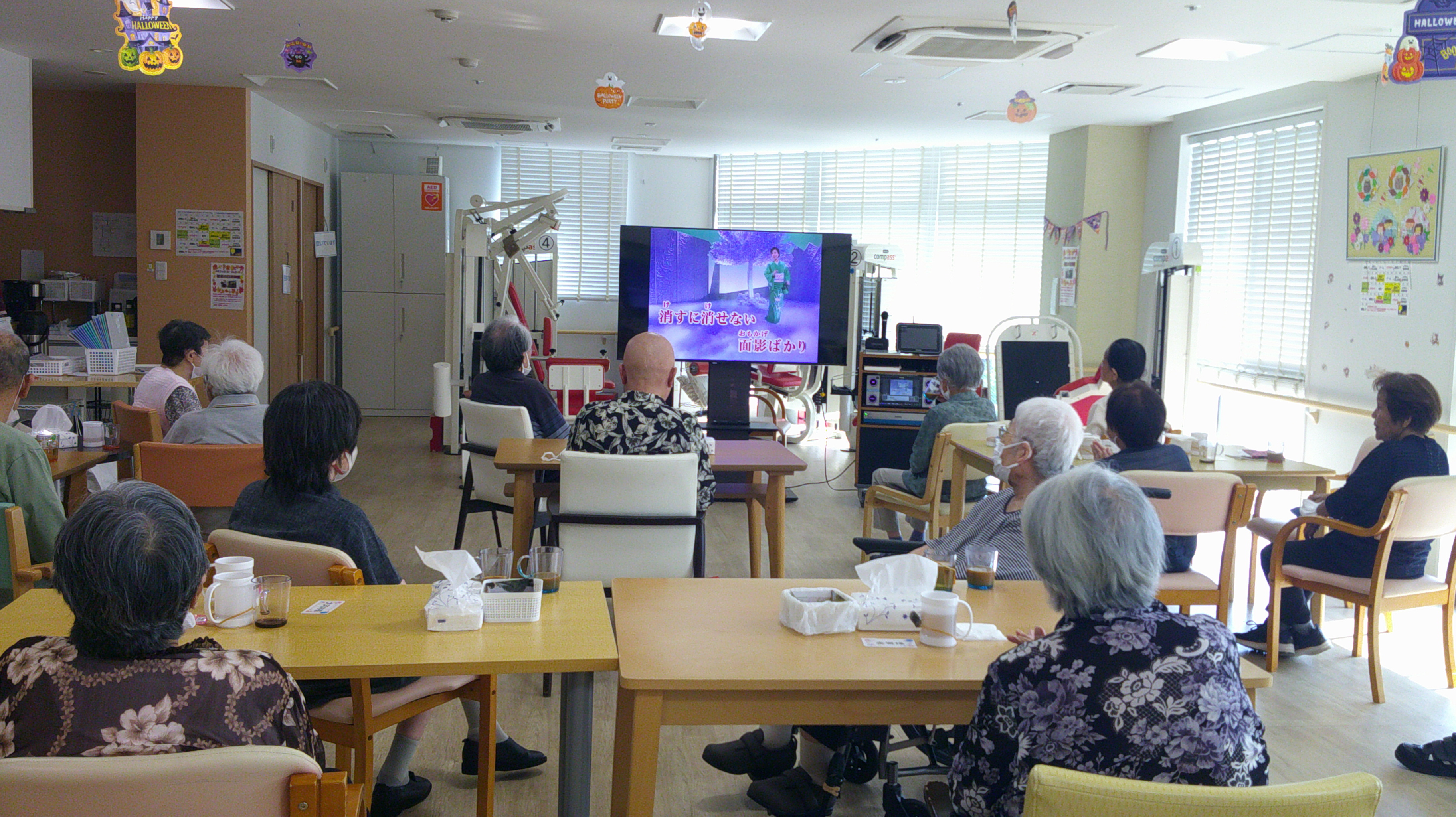 3階ロビーの装飾がハロウィンになっていました。なかなかハロウィンに馴染みがありませんでしたが、こうやって飾られているのを見ると、可愛いものがいっぱいあるんですね。かぼちゃの壁掛けや置物、魔女の帽子等・・・。ハロウィン当日は、食べるのも楽しみしています。