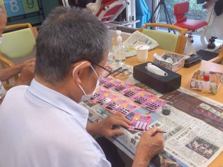先日、デイサービスセンターの夏祭りのご様子をお知らせします。金魚すくいや射的、野菜(紙製)の袋詰め等のゲームがありました。それぞれ利用者様が楽しまれた後には、焼き鳥や冷たい飲み物を頂きました。最後は、皆さんで盆踊りをして解散となりました。昨年から、デイサービスセンターで夏祭りを開始して、好評でしたので、満を持しての開催となりました。今月のイベントも楽しみですね。