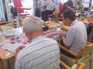 先日、デイサービスセンターの夏祭りのご様子をお知らせします。金魚すくいや射的、野菜(紙製)の袋詰め等のゲームがありました。それぞれ利用者様が楽しまれた後には、焼き鳥や冷たい飲み物を頂きました。最後は、皆さんで盆踊りをして解散となりました。昨年から、デイサービスセンターで夏祭りを開始して、好評でしたので、満を持しての開催となりました。今月のイベントも楽しみですね。