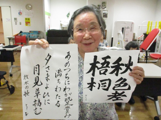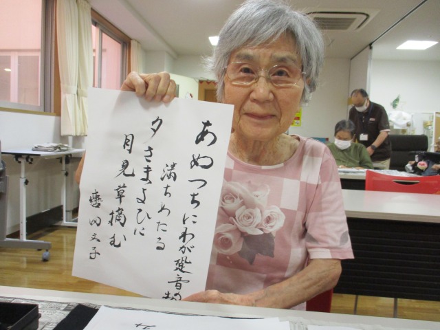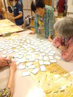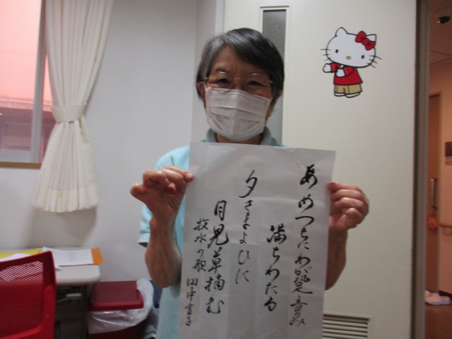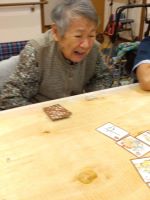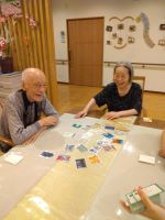 チーム別にかるた、百人一首等楽しんでいただきました。かるたでは「す~」を「う~」とか「う~」を「ふ~」と聞き間違えたりでスタッフが最初の一文字を伝えているのですが途中からは発声練習のようで最後は大笑い( ´艸`)でした。