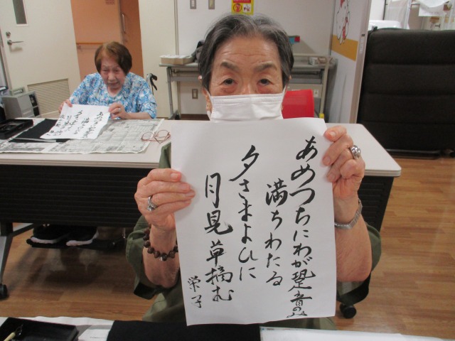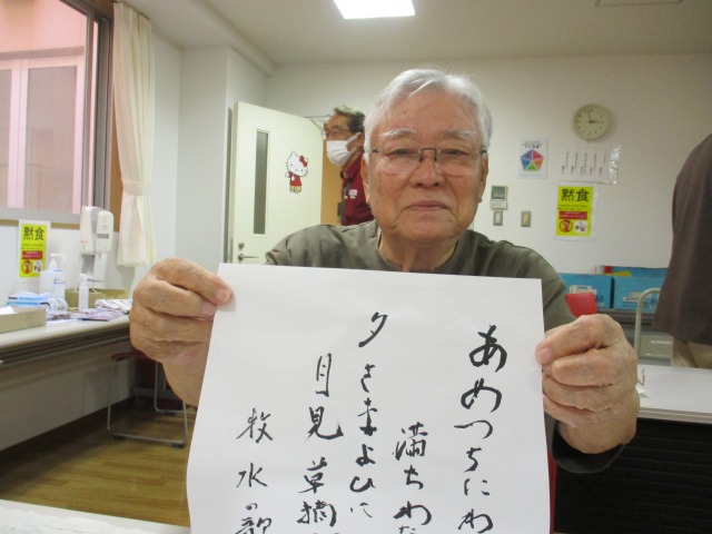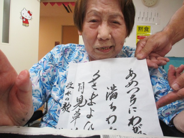 チーム別にかるた、百人一首等楽しんでいただきました。かるたでは「す~」を「う~」とか「う~」を「ふ~」と聞き間違えたりでスタッフが最初の一文字を伝えているのですが途中からは発声練習のようで最後は大笑い( ´艸`)でした。