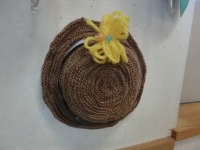 麦わら帽子は、わらの様な素材をぐるぐるっと巻いて作り上げました。