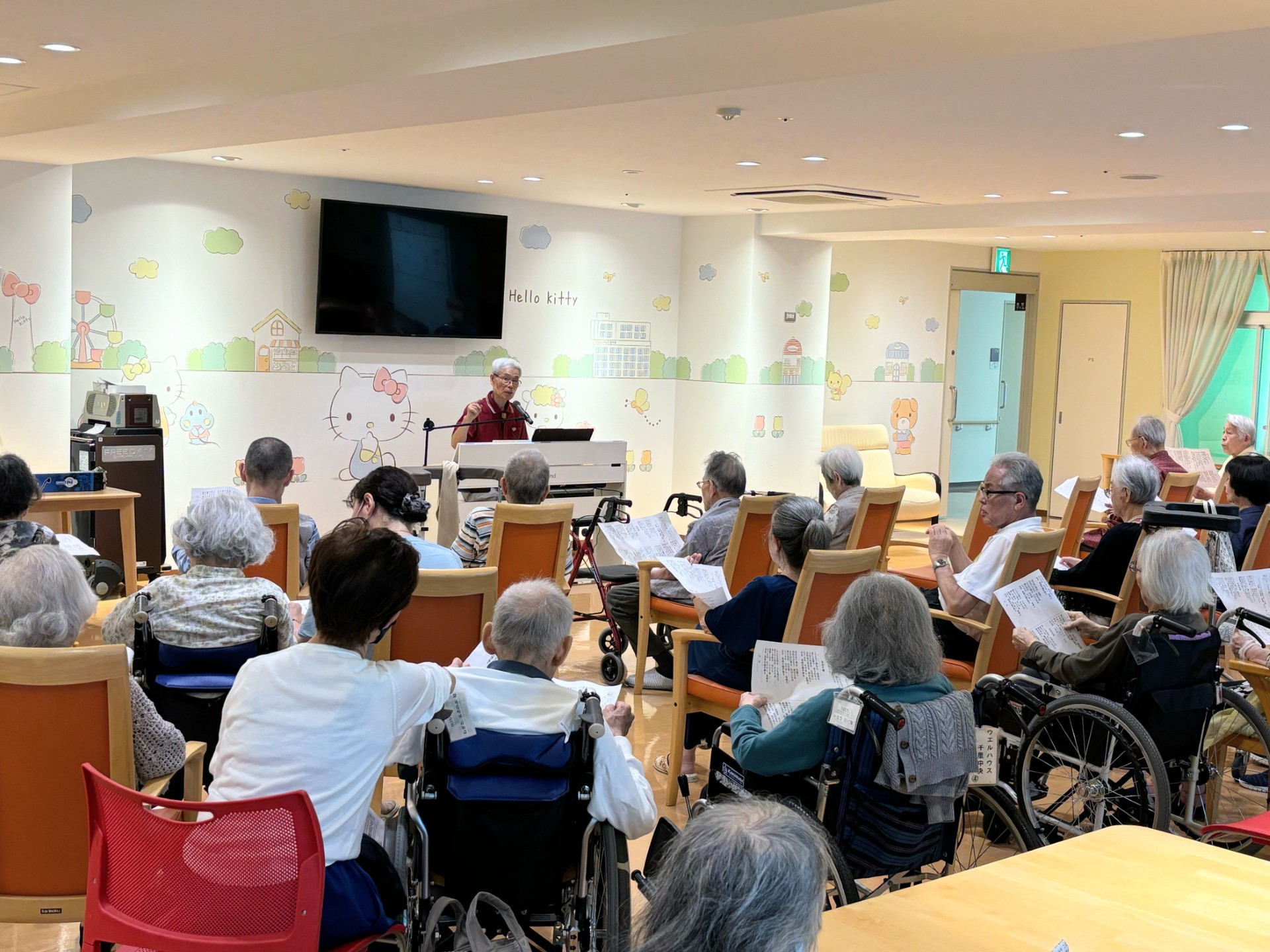 こんにちは、シーハーツ柏です。夏祭り模様をお伝えします。金魚すくいというわけにはいかないので、ヒヨコちゃんをすくいました。入居者様、意外とお上手なんです。「こんなにたくさん、取れましたよ。」 と、みなさんお上手です。 射的ゲームでは、かわいいぬいぐるみをゲットしてニコニコ笑顔の入居者様。チョコバナナを片手にお祭り模様が伝わります。 お昼はお好み焼きと西瓜をご賞味いただきました。