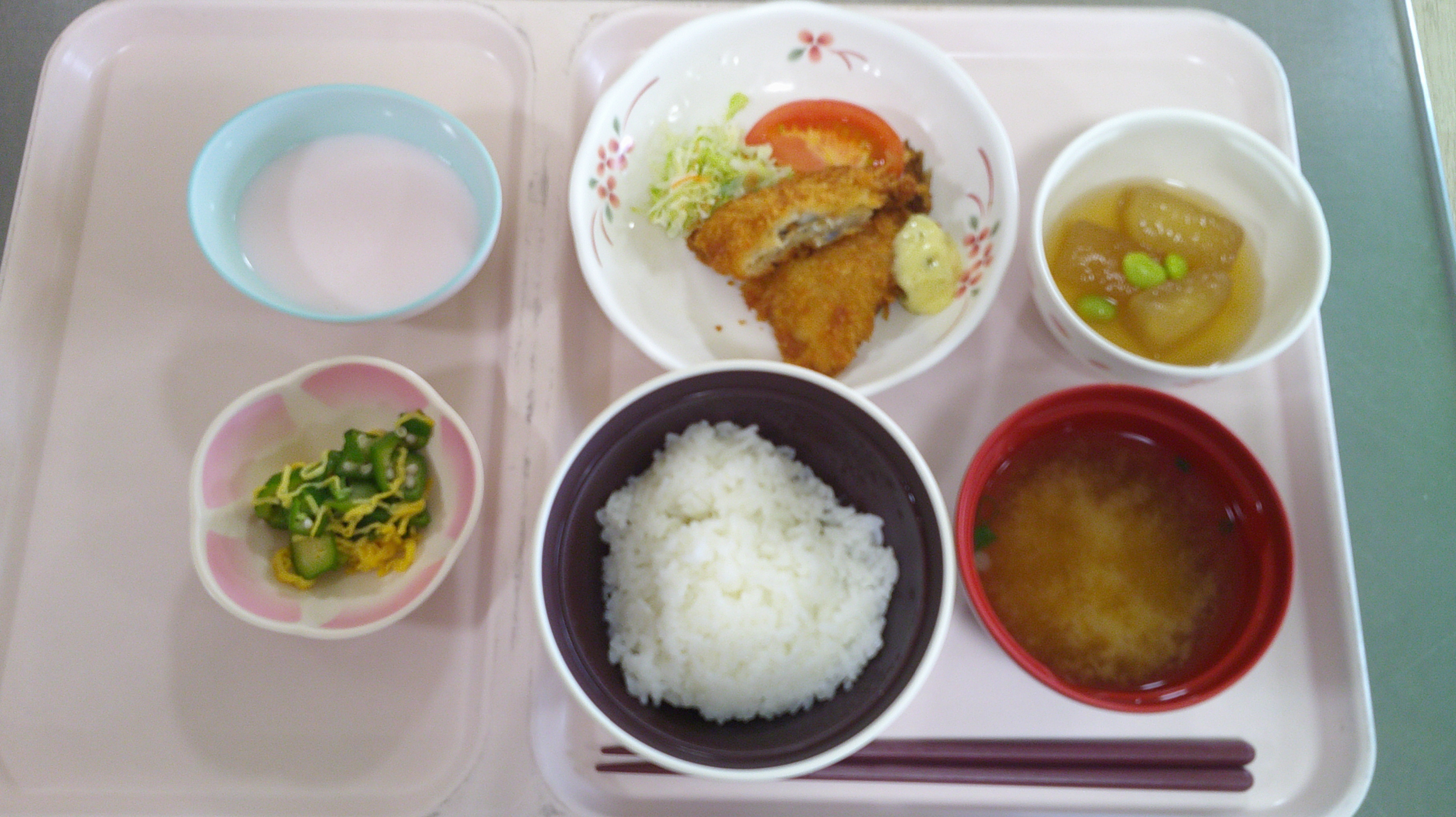献立のメニューは、鯵の蒲焼き風と絹厚揚げのおろしがけ、キャベツの塩昆布和えです。