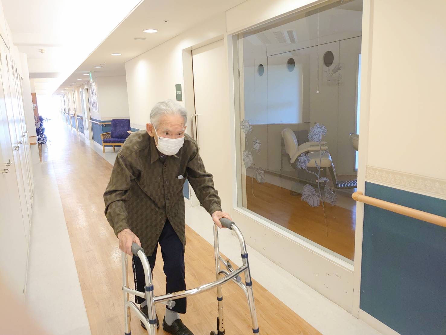 乾燥が終わった洗濯物をフロアに持って上がるとたまたま居室から出てこられたご入居様がおり、「あら洗濯終わったの、終わったのなら出しなさい、たたんでおくから」と声をかけて下さり有難くお願いして、急いでカメラを取りに、もくもくとたたんでくださっている所をホーカス