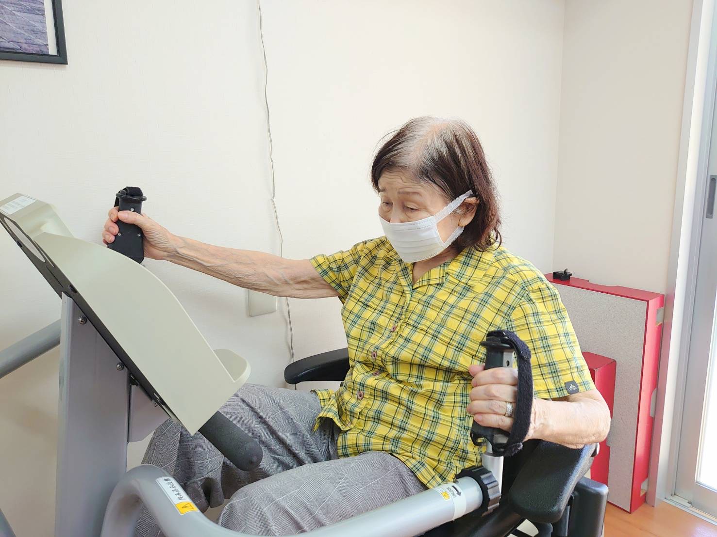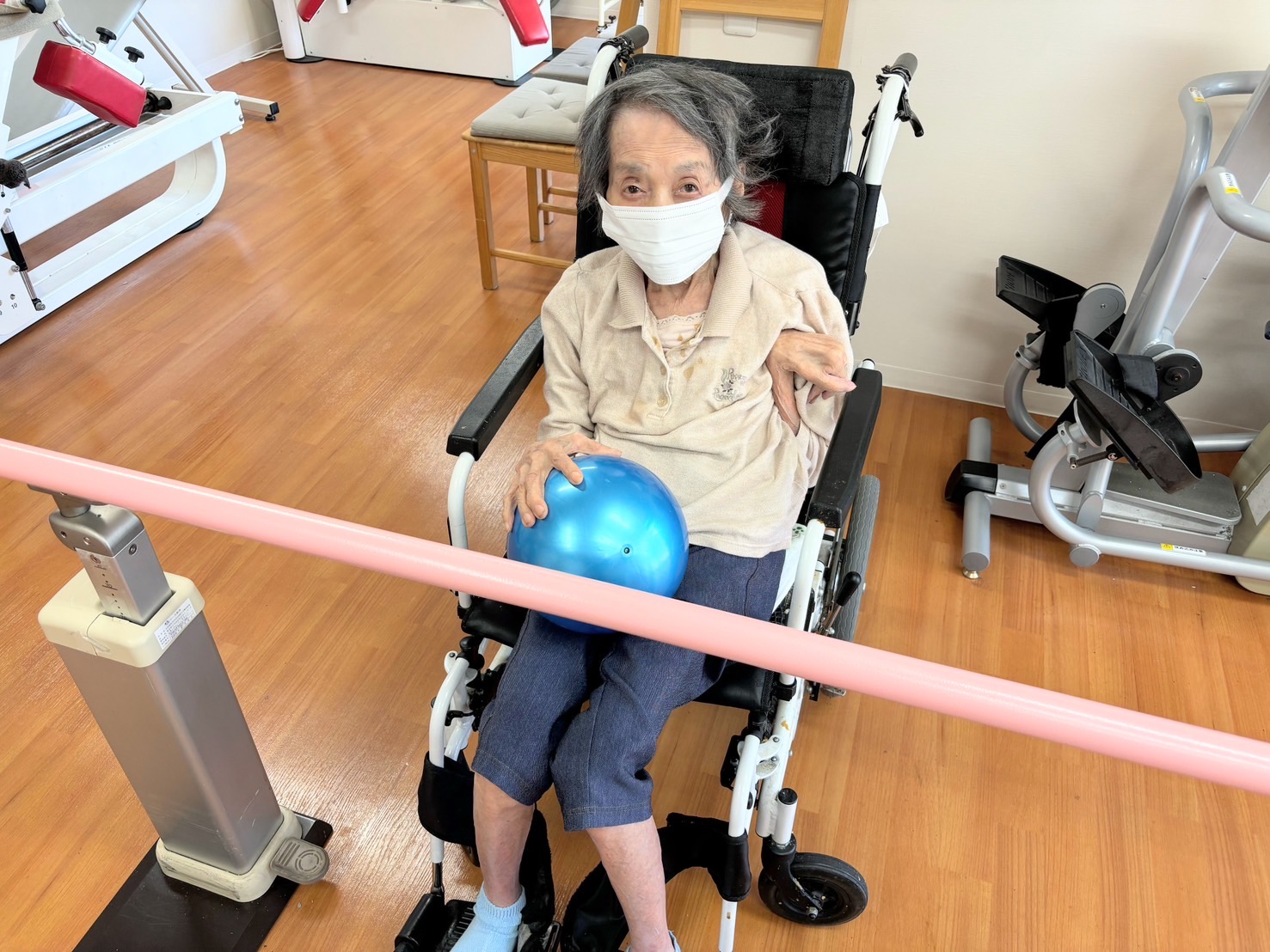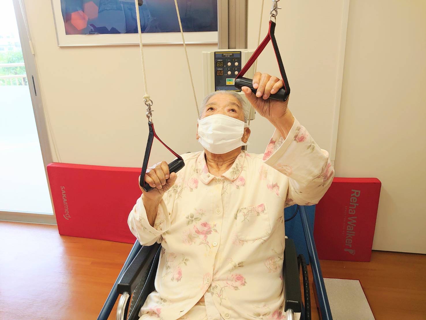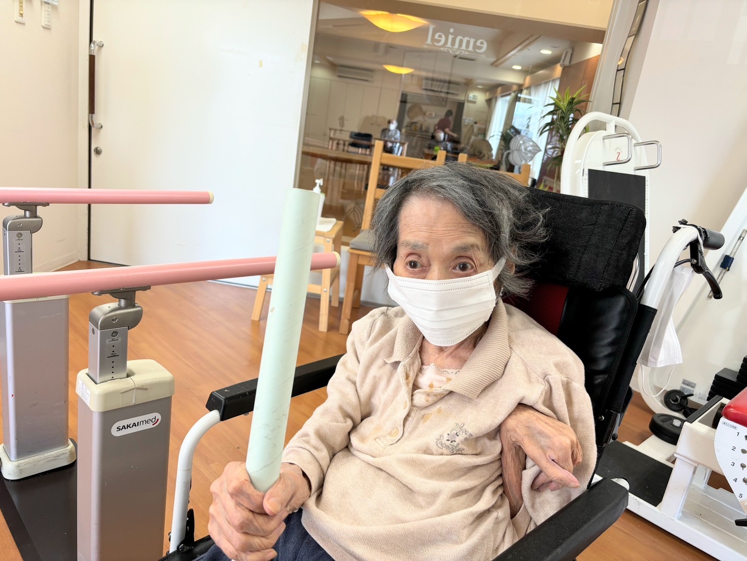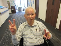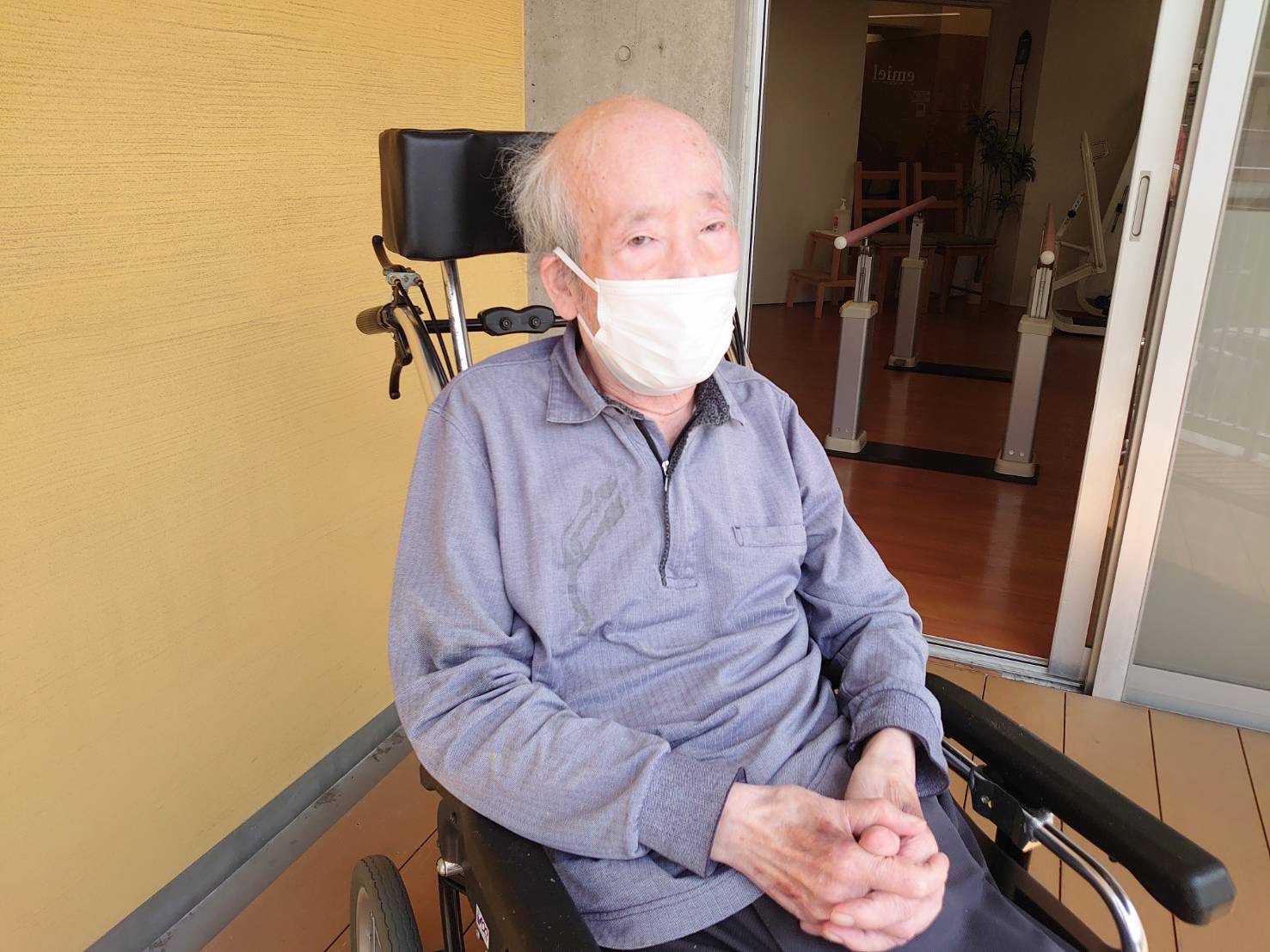 ご家族が面会に来られました。面会後に息子様が廊下を手引き歩行にて下肢筋力運動をされました。