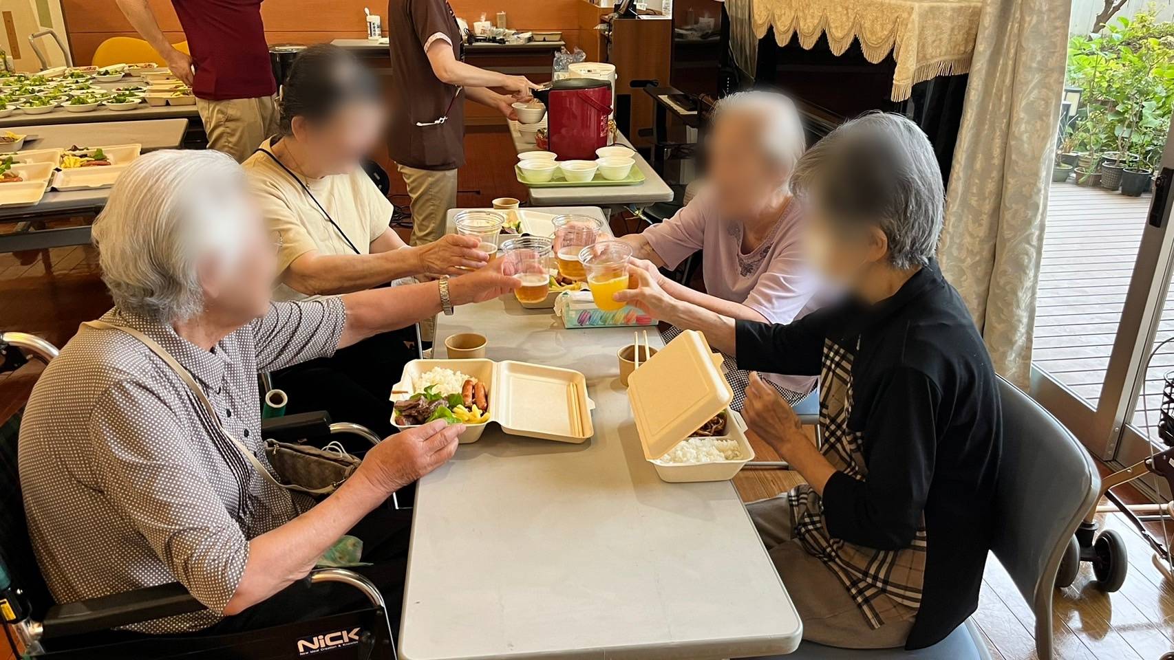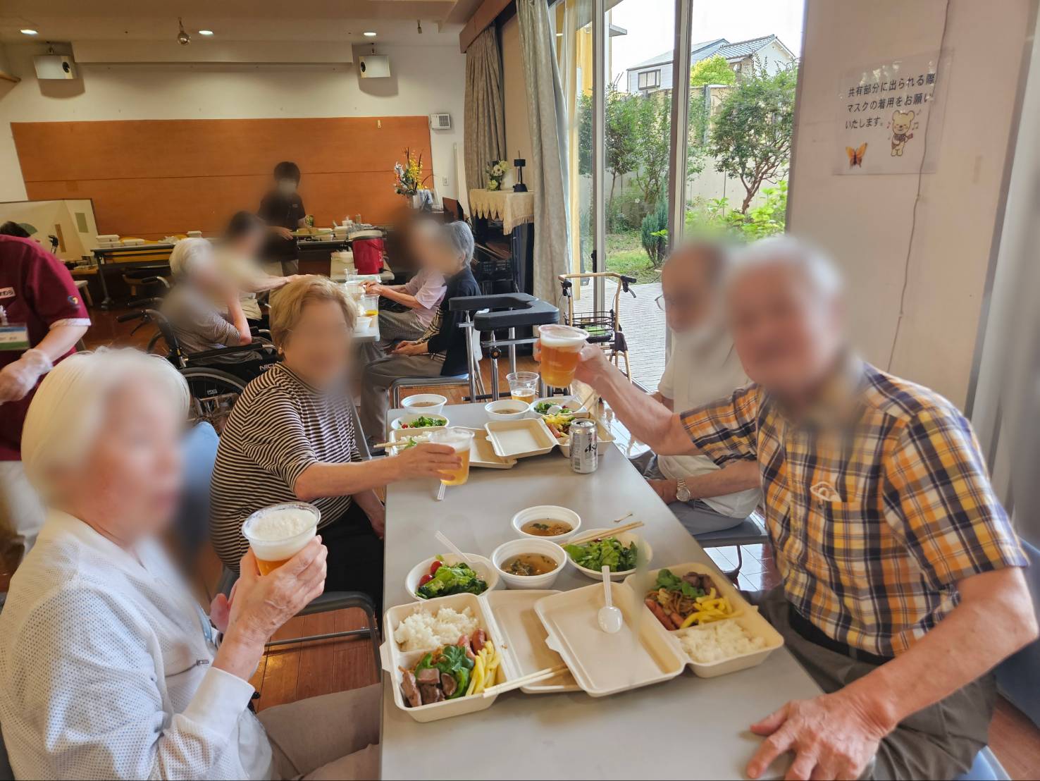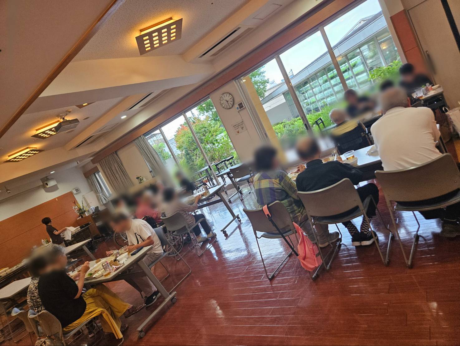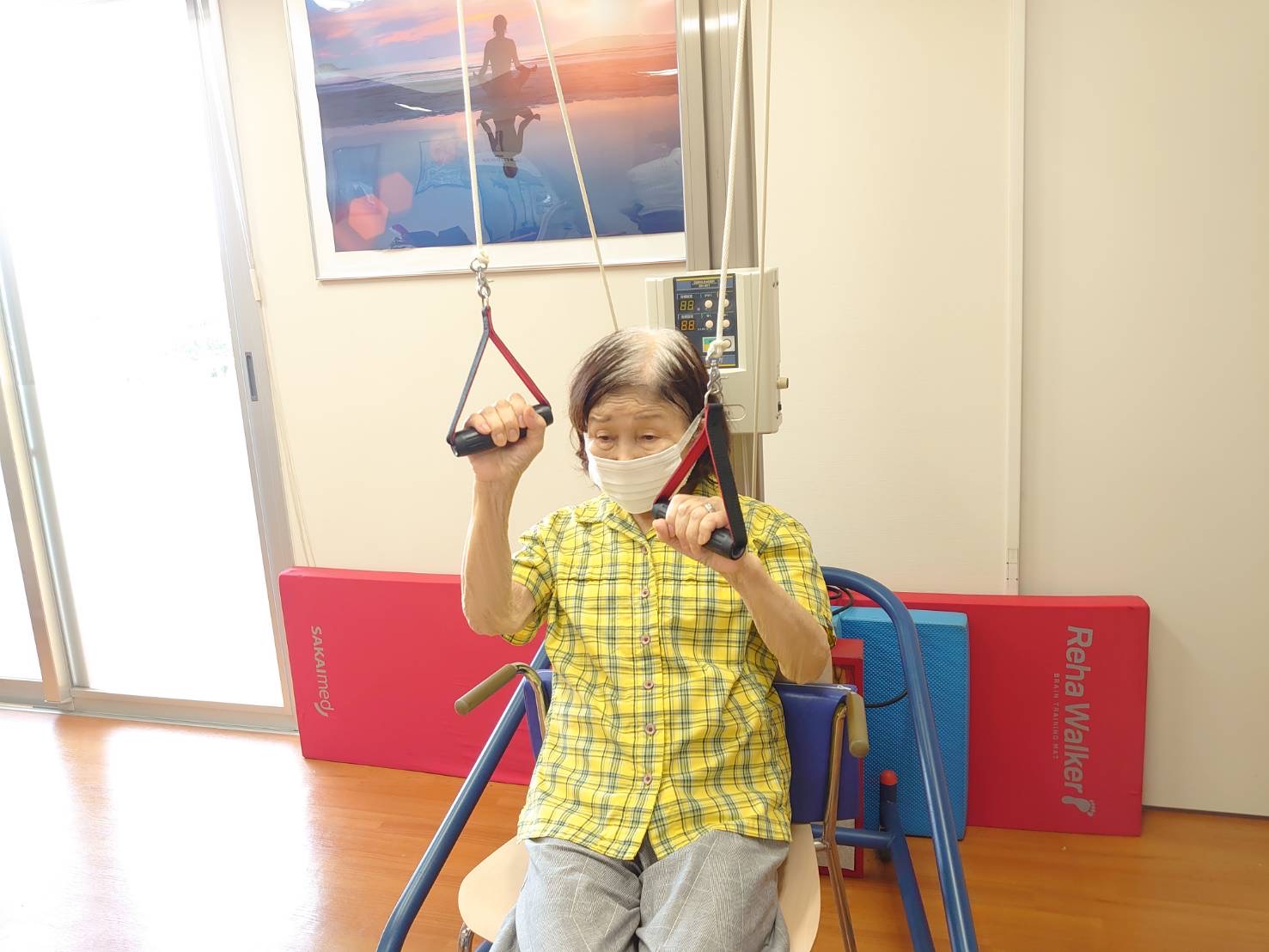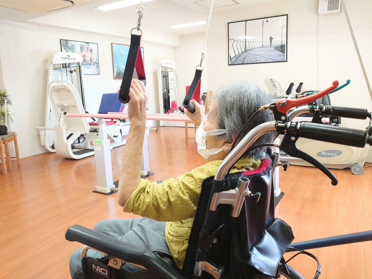 ご家族が面会に来られました。面会後に息子様が廊下を手引き歩行にて下肢筋力運動をされました。