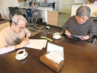 こんにちは、シーハーツ柏です。 月に2回の句会です。 テーマは「夏休み」 入居者様にとっては、戦時中の幼少期を過ごされ、夏休みを経験したことがありませんという方もいらっしゃいました。 夏休みは子育て世代にとっては忙しい時期です。親心で一句。「夏休み 子どもの工作 親熱中」 ある入居者様は、叔父さんから聞いた上高地での林間学校の思い出などを熱く語ってくださいました。句会に参加された入居者様も吸い込まれるように話に夢中になります。