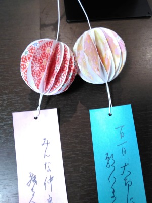 短冊だけを付けるのもつまらないので、私のワガママで吹き流し風に