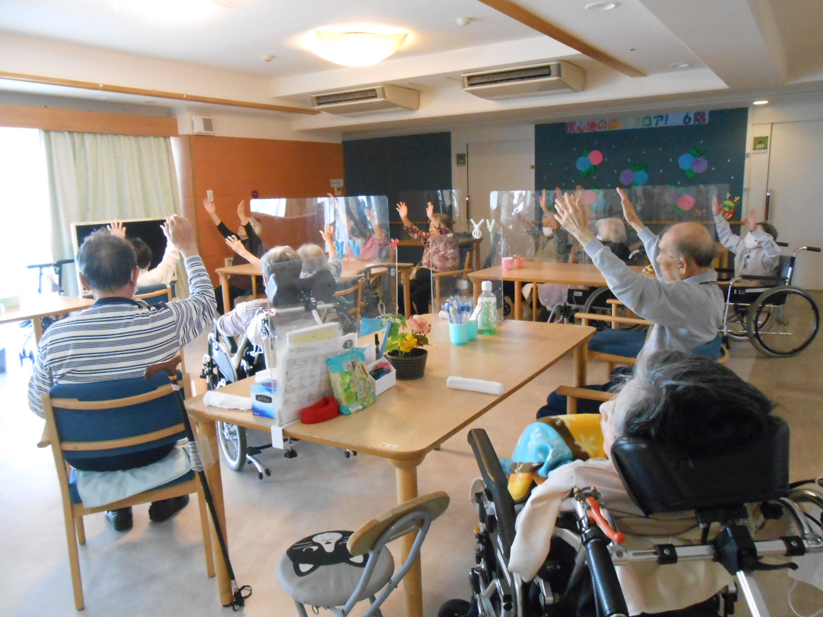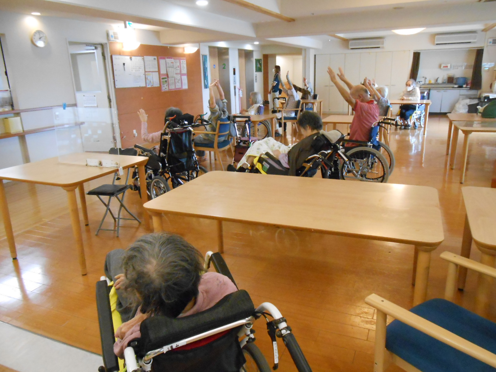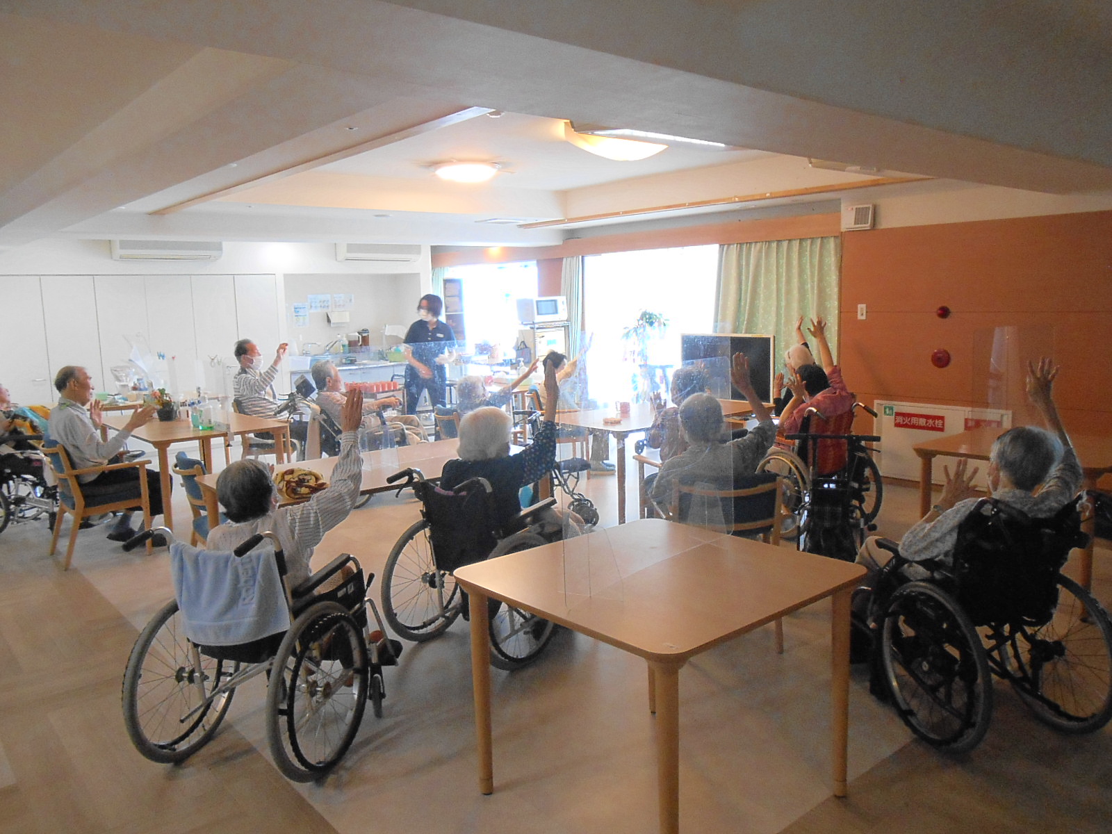 入居者様が手をあげたり