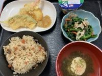 今日の昼食には【父の日御膳】 五目御飯に、天ぷらなどが提供され皆さん美味しそうに召し上がっていました。