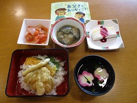 本日の昼食は父の日メニュー、天丼です!