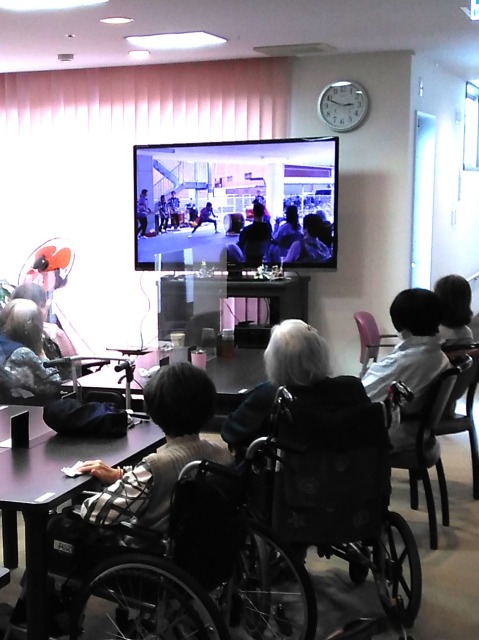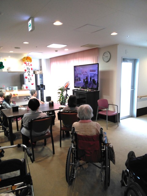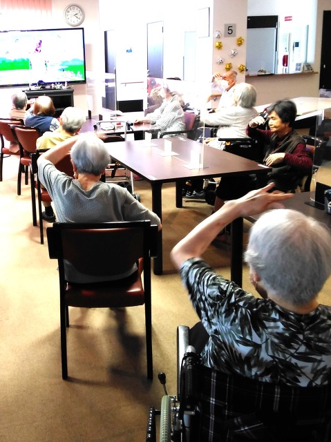 テレビに映った映像を皆さん一生懸命見ながら体操をされていました。