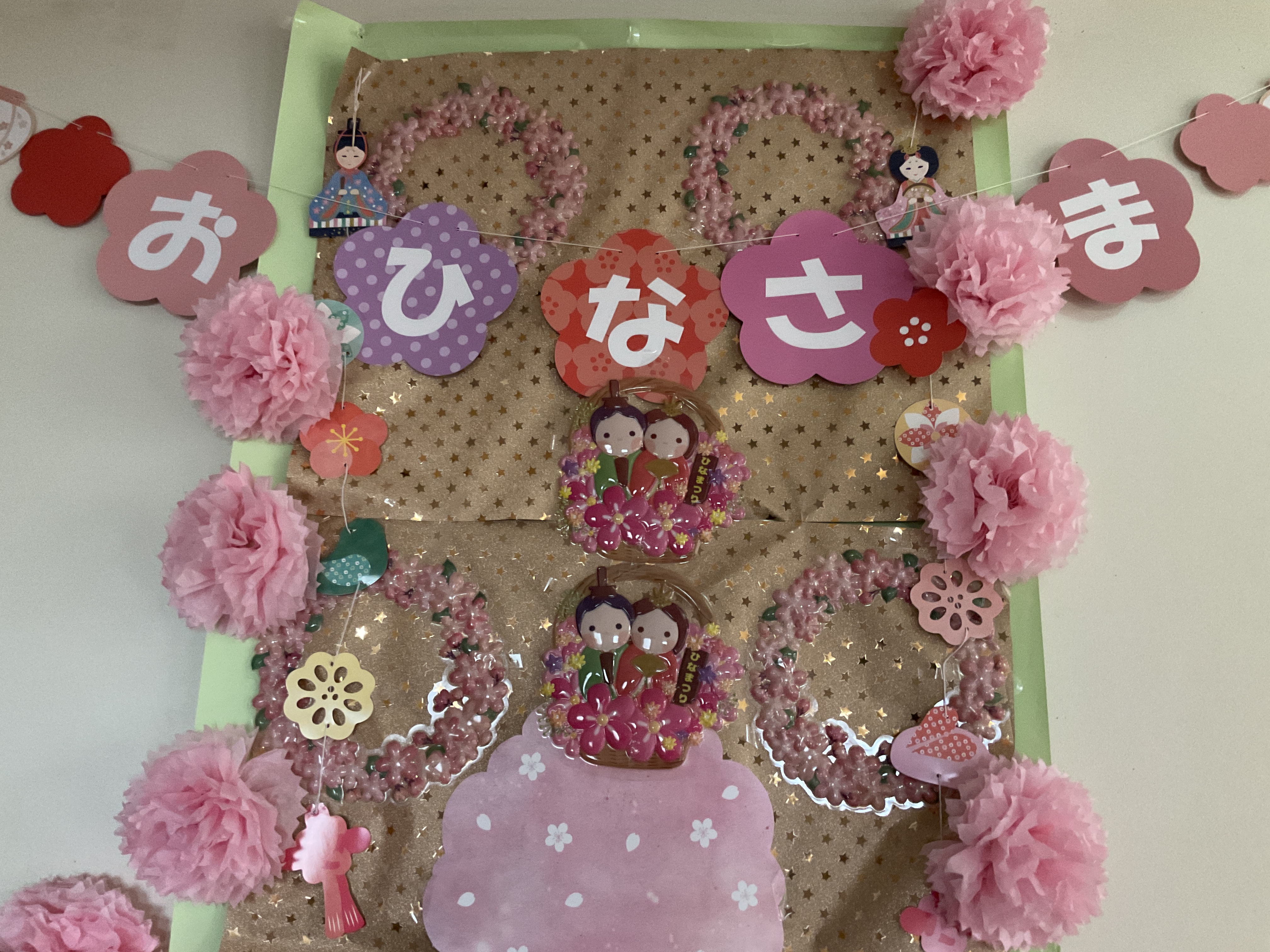 雛祭りを前日に、ひな人形のうしろの飾りが