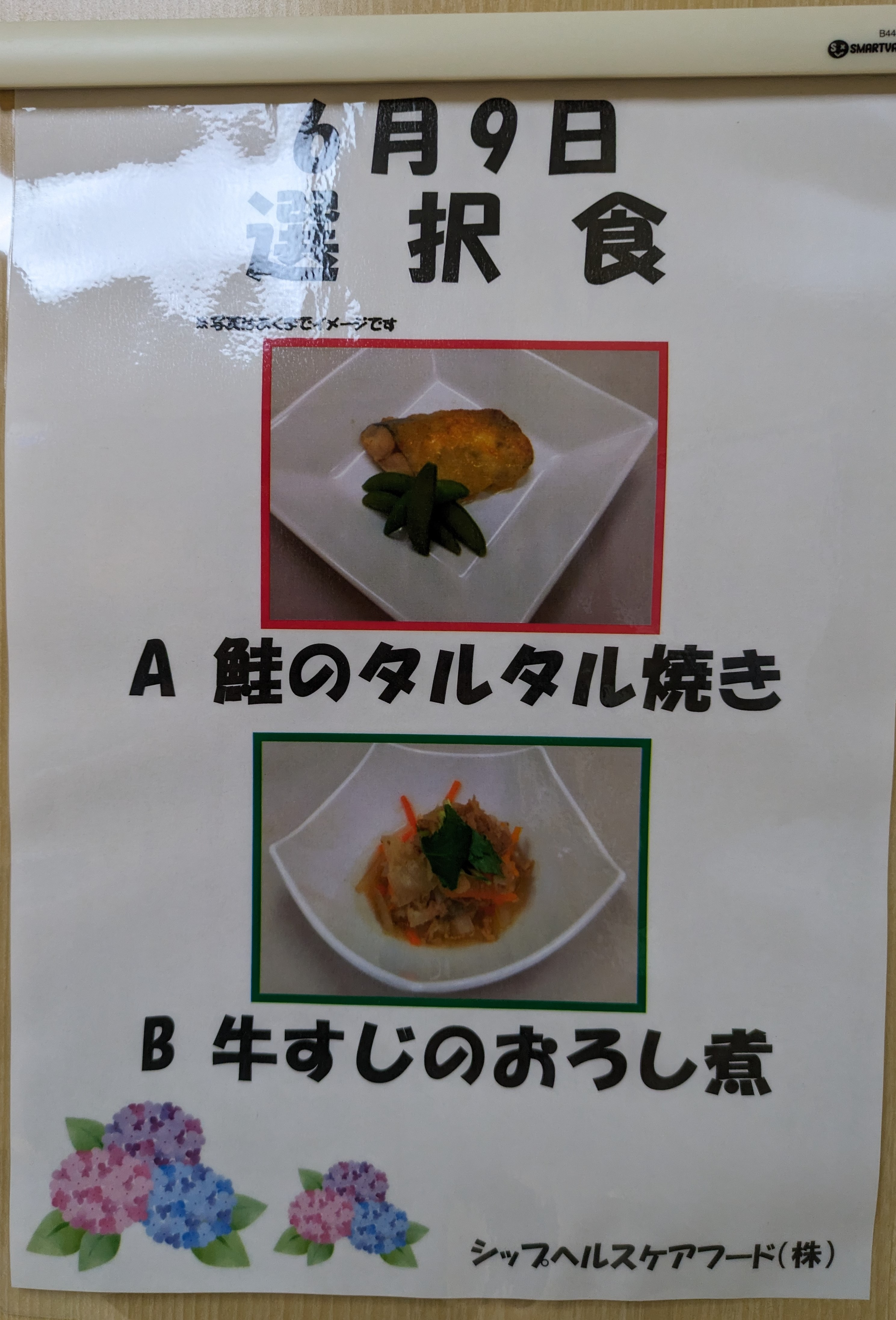 6/9 今日のお昼はおかずを2種から選んでいただく選択食でした。