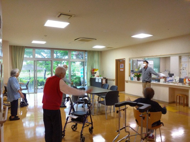 本日は5名の入居者様がラジオ体操に参加され、お変わりなくお元気に取り組んでおられました\(^o^)/