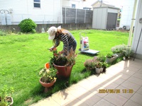 お花屋さんが中庭にある寄せ植えのお手入れに来てくれています。