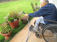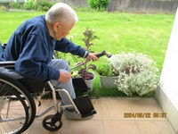 中庭のプランターの水やりを入居者様と一緒にしました。
