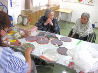 今回のワークショップは着物地をつかって、オリジナルの和モダンなうちわ作りです♪
