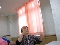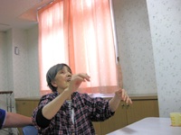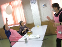 こんにちはデイサービスです。今日のレクはゲームレクでした。今までにやったことのない内容のゲームを皆様に参加していただきました(*^-^*) それは黒猫白猫ゲームです。紙コップに黒猫白猫の顔を貼った物を箱にのせてご自分の前まで紐を引っ張ってもらうというものです。皆様初めてやるゲームでしたが、真剣に参加して下さり他の人がやってるときには「ほら、頑張って!!」「優しく引っ張って!!」と応援したりと大盛り上がりでした。その後少しの間、これもまた初めてですが【あっち向いてホイ!!】をしました。皆様とてもコミカルな動きをされ大笑い(≧◇≦)されていました。「楽しかったよ」とお言葉を頂きました(*^^)v