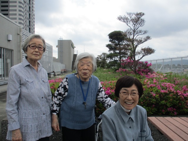 お天気が雨予報ということで、少し心配されながらお散歩に出られる入居者様もいらっしゃいました(;´・ω・)