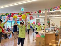 スタッフによるノリノリの応援合戦、皆様と一緒に準備運動も兼ねたダンス♪